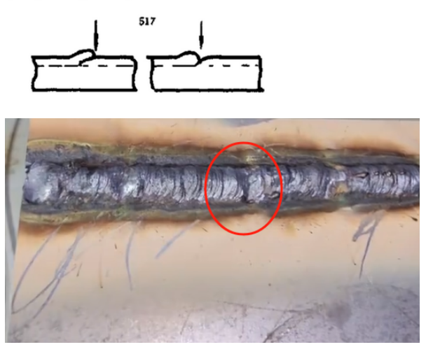 說明:焊縫銜接處的局部表面不規(guī)則。(GB/T6417  NO.517)