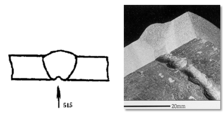 說明:由于對接焊縫根部收縮造成的淺的溝槽。(GB/T6417  NO.515)