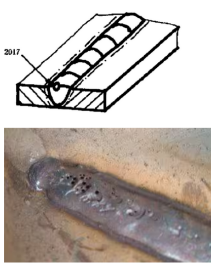 說明:暴露在焊縫表面的氣孔。(GB/T6417  NO.2017)